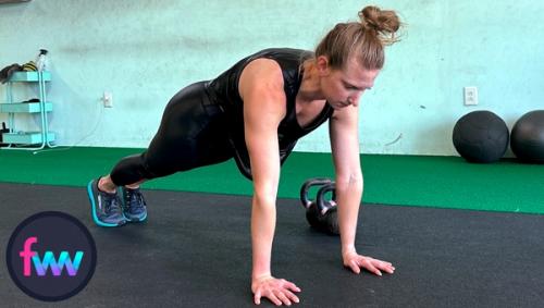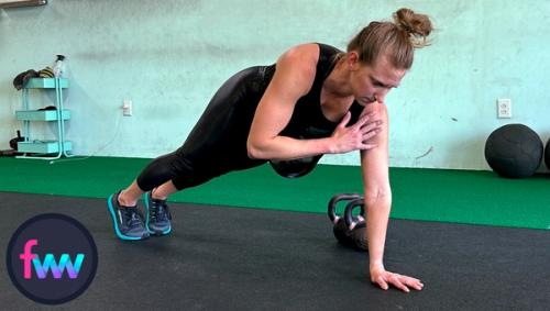 You can use dumbbells or kettlebells for this workout. Both are great options.